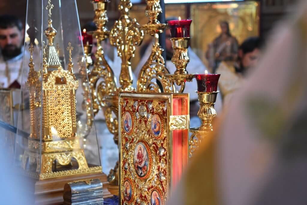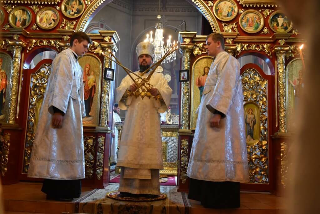 Під час богослужіння, на малому вході, Блаженнійший Митрополит Епіфаній до дня свята Пасхи відзначив священнослужителів такими богослужбовими нагородами: